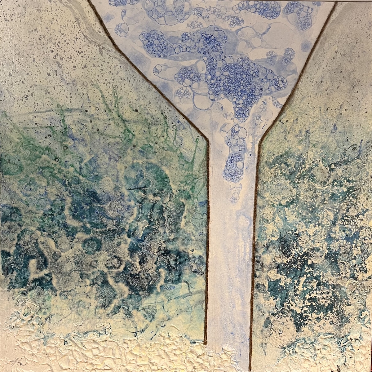 "Wasser" (Performance Gelatine Brunnen), Acryl 80x80cm mit weißem Leistenrahmen, 1.000,--