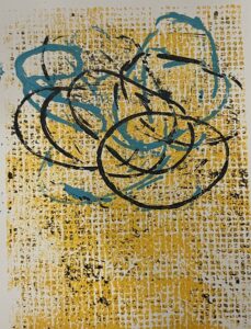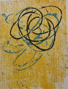Eng verwandt ist die „Monotypie“. Hier kann der Druckträger (meist eine Glasplatte)  nur ein einziges Mal verwendet werden. Es entsteht also ein Werk, das nur einmal vorhanden ist und nicht reproduziert werden kann – also ein Unikat. Diese Technik wurde schon im 17. Jhd. angewendet, damals mit meist schwazer Farbe, womit das Endprodukt fast wie eine Zeichung ausgesehen hat. Bei Verwendung mehrer Farben enstehen interessante Effekte, bei Serien sieht jedes Blatt natürlich anders aus.
